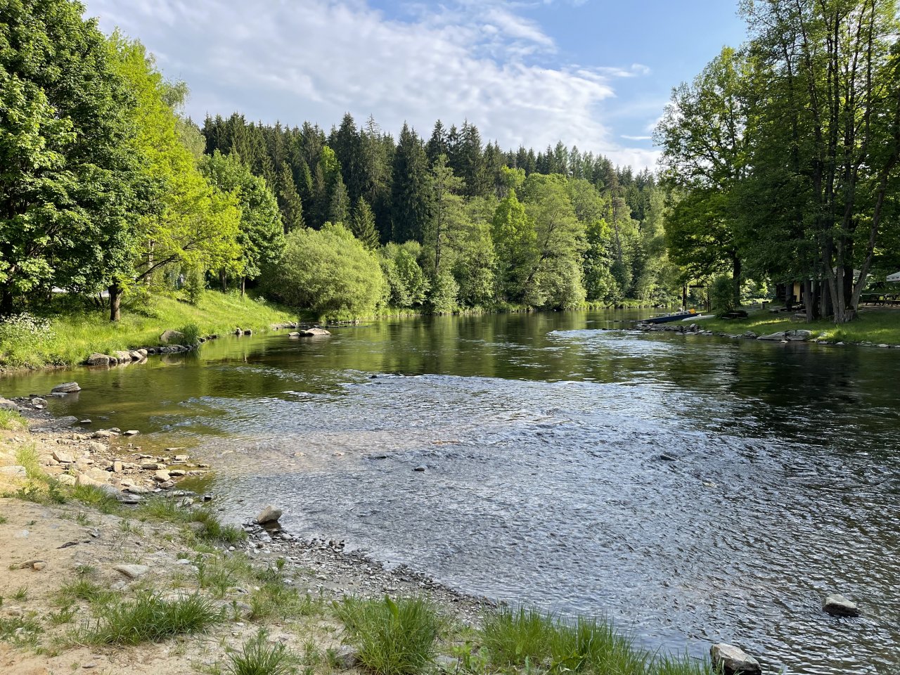 Vltava 28 mezi Vyšším Brodem a Rožmberkem (revír 423 041) je ikonický pstruhový revír skvělý pro muškaření. Pokračovat