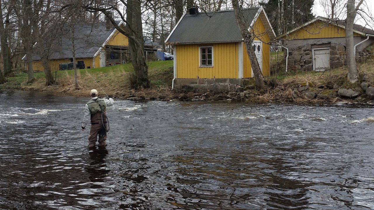 Jarní muškaření na řece Tidan, Švédsko