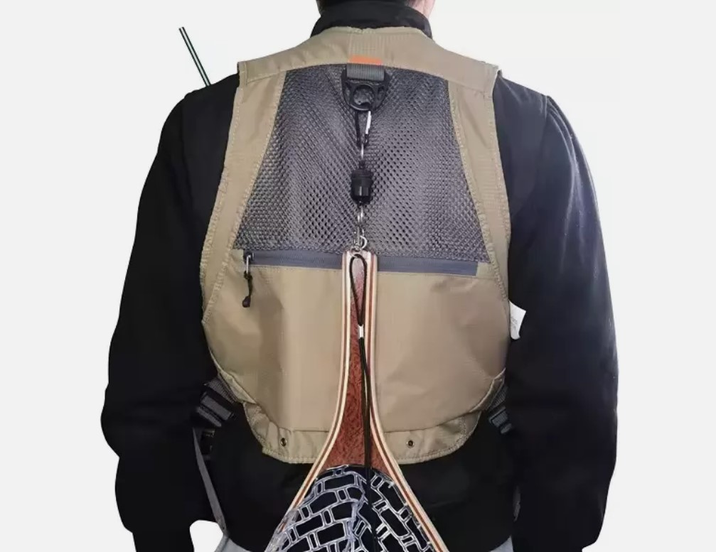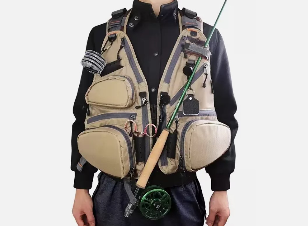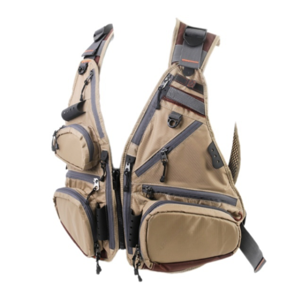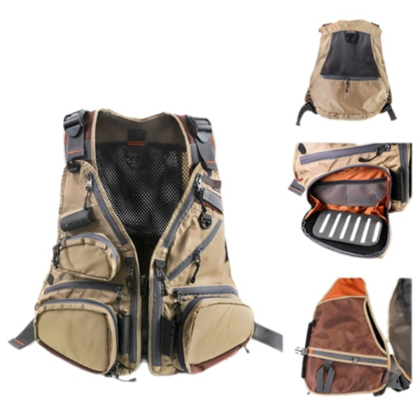 Jedná se o rybářskou vestu, která je téměř všestranně použitelná jako batoh!