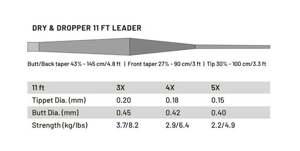 | Dry & Stealth Dry & Dropper 11 ft Leader 3X |
