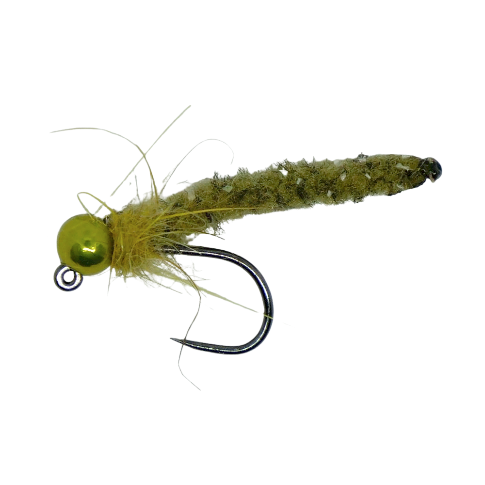 Tungstenový jig MOP Fly se zeleným tělíčkem a metalicky zelenou hlavičkou