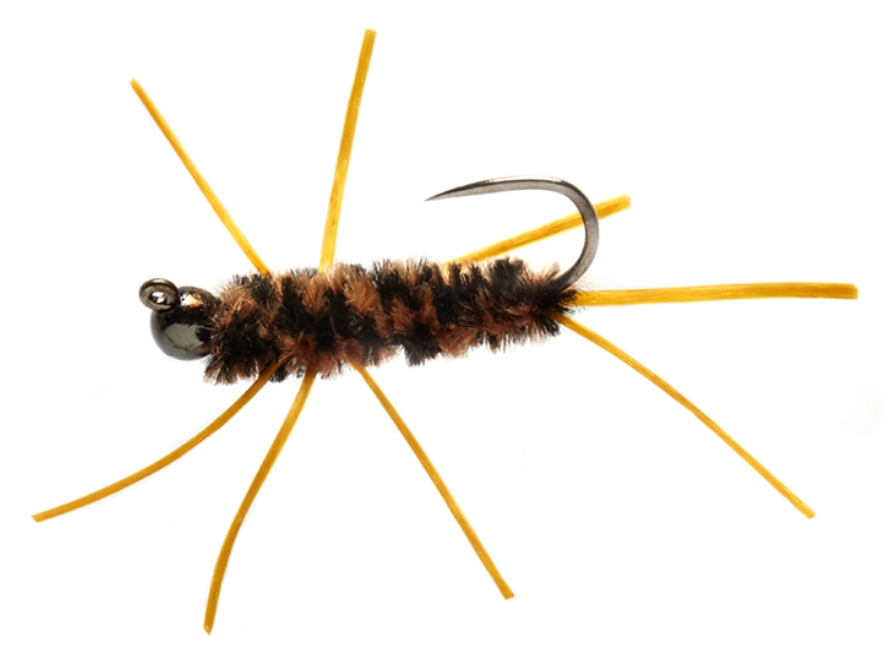Tungstenový jig napodobující černo-béžovou nymfu pošvatky B/P